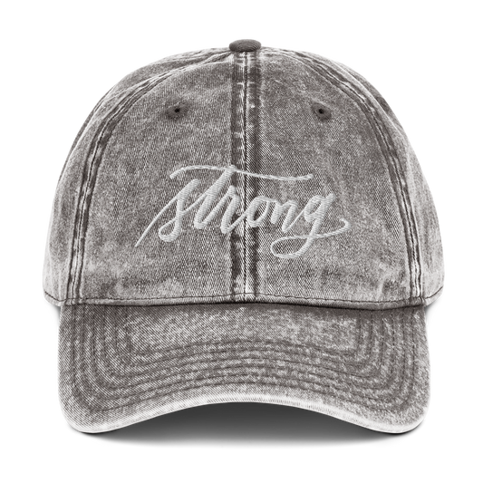 Embroidered Light Gray Script "Strong" Calligraphy Vintage Cotton Twill Cap