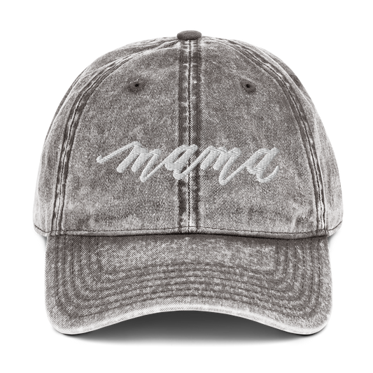 Embroidered Script "Mama" Calligraphy Vintage Cotton Twill Cap