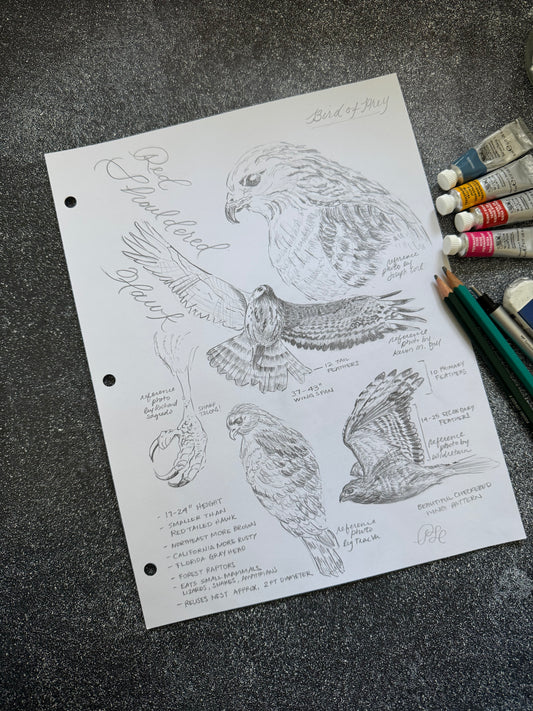 Custom Scientific Illustration - Ornithological Graphite Studies - Red-Tailed Hawk
